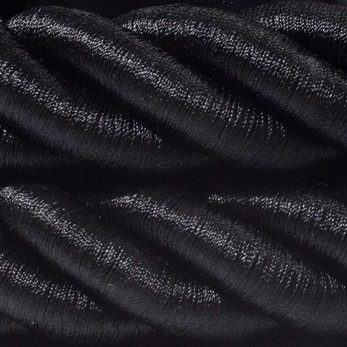 Materiálem pro lesklý černý lanový kabel 3XL je umělé hedvábí. Hedvábný oplet spirálového lanového elektrického kabelu je typický krásným, lesklým povrchem a jasným podáním barev. Je vyroben novou technologií, umožňující zcela novou úroveň v oblasti zpracování povrchové úpravy. Umělé hedvábí je působivý materiál vhodný k výrobě designových svítidel v moderním nebo retro stylu. Propletení jednotlivých vodičů do spirály dodává textilnímu lanovému kabelu v leskle černém provedení neobyčejný vzhled a působivý efekt. Spirálový kabel lanový typu 30NERO osloví všechny tvořivé duše, protože zkrátka přitahuje pozornost.