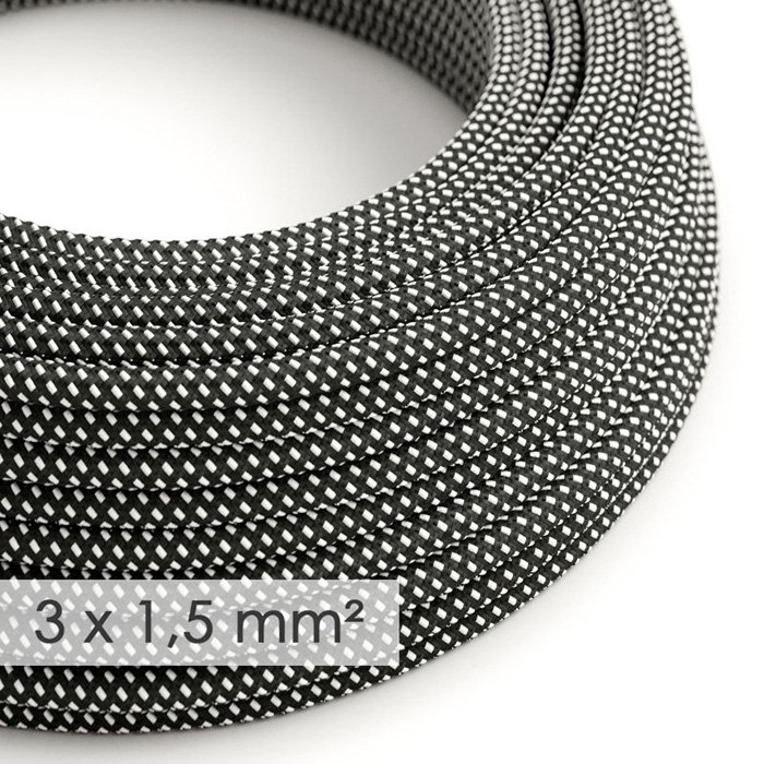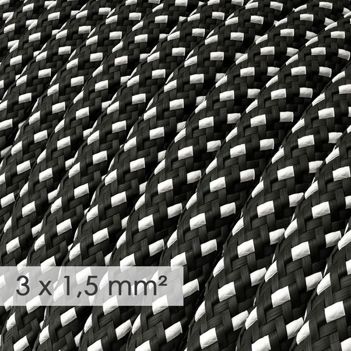 Vzorovaný textilní kabel 3x1,5 mm s produktovým označením RayonDotted RT41 je určen pro pevné instalace v elektrických sítích 230 V. Vhodný je zejména pro světelné okruhy s vyšším výkonovým zatížením (světelné systémy s více svítidly v řadě v rámci jednoho obvodu) a pro zásuvkové okruhy určené k napájení spotřebičů s nízkým až středním příkonem. Díky měděným lankovým vodičům v kulatém provedení, dvojité PVC izolaci a preciznímu zpracování nabízí kabel vysokou míru bezpečnosti, flexibilitu a nadstandardní mechanickou odolnost s nosností kabelu pro zavěšená svítidla až 6,75 kg. Dvoubarevný vzorovaný povrch z jemné Rayon (umělé hedvábí) textilie dodává kabelu mimořádný vzhled, díky kterému se stává nejen funkčním, ale i estetickým prvkem interiéru. Využijte 3x1,5 mm vzorovaný textilní kabel RT41 pro individuální či malosériovou výrobu originálních svítidel či osvětlovacích sestav.
