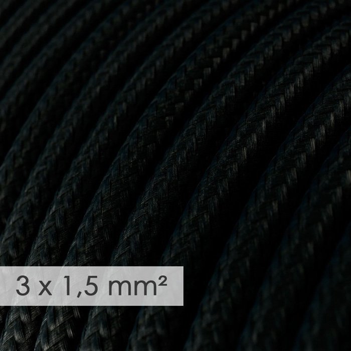 Černý textilní kabel 3x1,5mm RayonGloss RM04 | lesklý