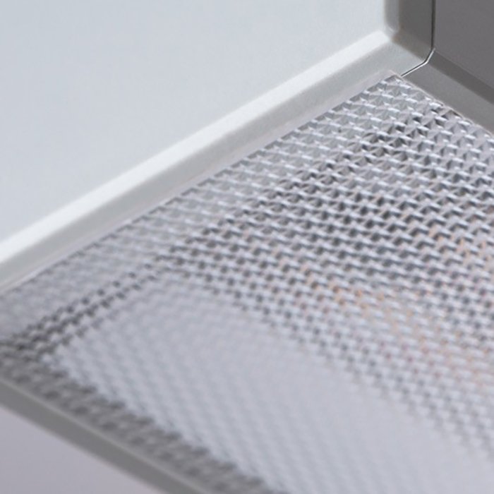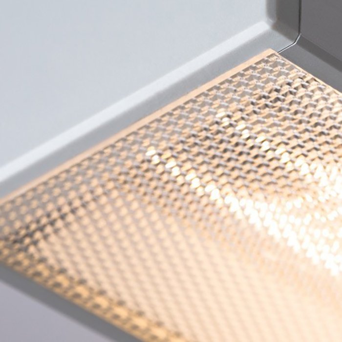 - Strukturovaný povrch difuzoru tvořený pravidelnými mikroprizmaty zajišťuje nízký index oslnění UGR <19.
