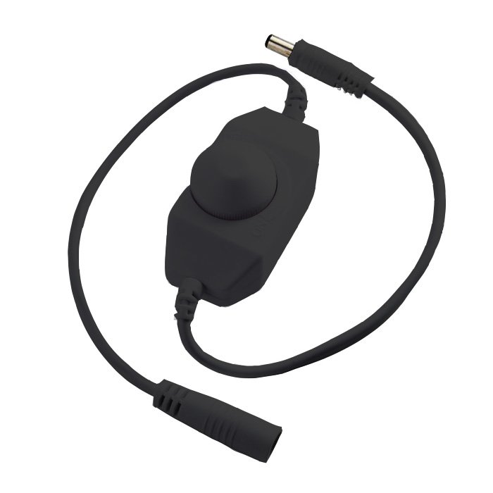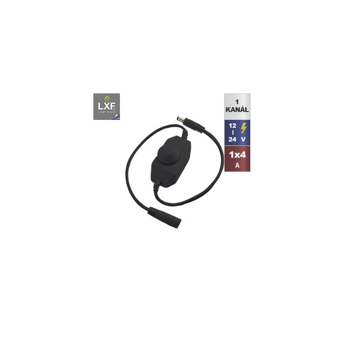 Černý manuální LED ovladač s vypínačem pro jednobarevné LED pásky je vhodnou ovládací sadou pro jednobarevné LED pásky. Výkon ovladače je 1x4A, lze k němu připojit LED pásky o celkovém výkonu 48W při napětí 12V a 96W při 24V. Manuální ovládání LED pásků je oblíbeným způsobem jak upravit intenzitu osvětlení. Pomocí LED ovladače je možné vypnutí, zapnutí, stmívání LED pásků. Regulace jasu LED pásky na dálkové ovládání probíhá delším otočením ovládacího kolečka.