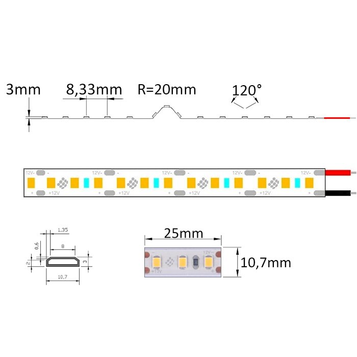 počet LED diod/1 běžný metr: | ≤ 120 LED/1bm |