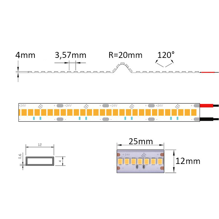 LED pásek 24V Lux Miners | IP65 | 10W | 280LED | CRI90+