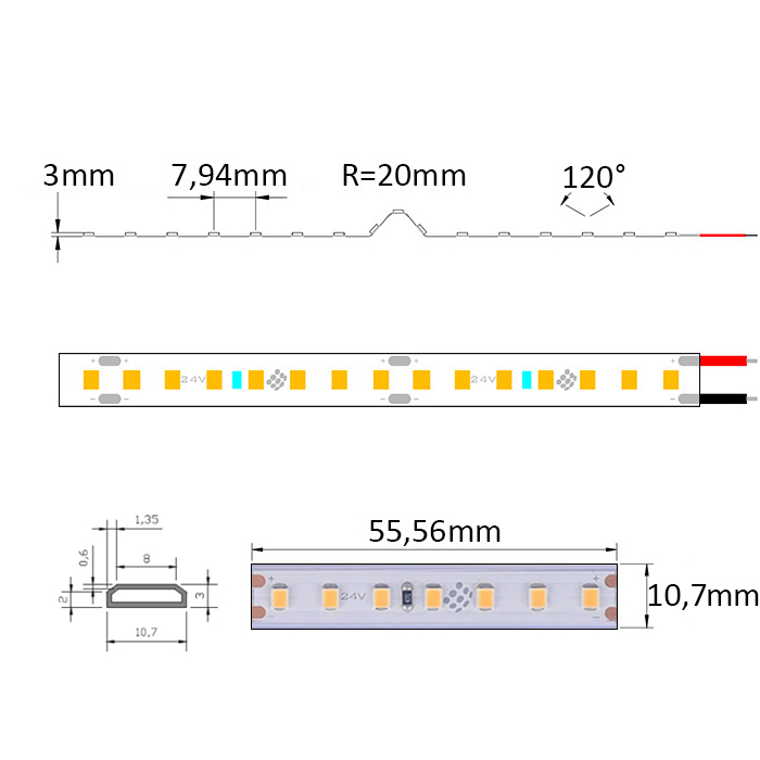počet LED diod/1 běžný metr: | ≤ 180 LED/1bm |
