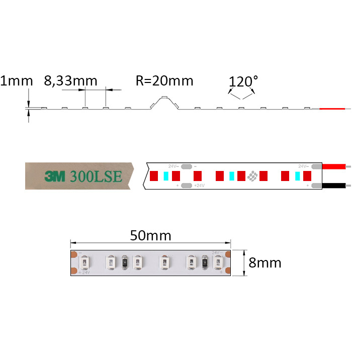 Doplňující technické informace pro 24V LED pásek červený SC24120E