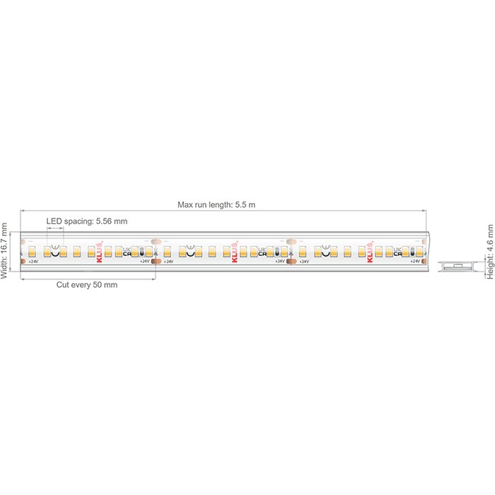 LED pásek KLUŚ KWP-14KVHE-0480-24 4,8W/m 180LED/m CRI90+ IP65 KLIK