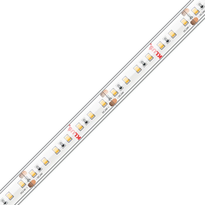 Voděodolný LED pásek KLUŚ KWP-8K-1440-24 o příkonu 14,4W, napájecím napětí 24V a vysokým indexem podání barev CRI>90 patří mezi vysoce kvalitní LED pásky se skvělými parametry, dlouhou životností a vysokou technickou hodnotou. KLUŚ poskytuje na tento produkt tovární záruku 4 roky. Kvalitní voděodolný LED pásek osazený diodami SMD2835 neztrácí rychle svou svítivost a nehrozí u něj náhodná porucha některého z modulů nebo jednotlivých LED diod. Základem pro LED pásek je použitý podkladový materiál ve formě plošného spoje FPC (Flexible printed circuits) se zvýšeným podílem mědi. LED pásek je osazený nejkvalitnějšími LED diodami v počtu 140 LED/m a šířkou pásku 10mm. Při montáži do LED profilu s difuzorem tvoří svítící LED pásek souvislou linii světla bez viditelných mezer mezi diodami pouze v případě montáže do hlubšího LED profilu. Ledkový pásek 24V je vhodný pro instalaci v interiéru i exteriéru. Venkovní LED pásek splňuje třídu krytí IP65. Má zvýšenou odolnost proti vlhku a vodě. LED pásek je umístěn v transparentním voděodolném krytu - pouzdru.