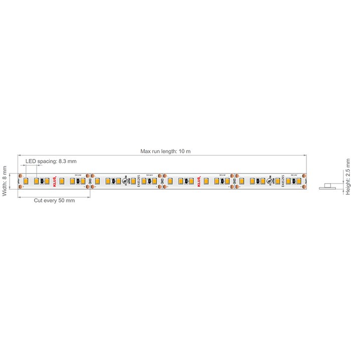 LED pásek K-BLUE-1220-24 o příkonu 9,6W, napájecím napětí 24V patří mezi vysoce kvalitní LED pásky se skvělými parametry, dlouhou životností a vysokou technickou hodnotou. KLUŚ poskytuje na tento produkt tovární záruku 4 roky. Kvalitní LED pásek 24V osazený diodami SMD2835 neztrácí rychle svou svítivost a nehrozí u něj náhodná porucha některého z modulů nebo jednotlivých LED diod. Základem pro LED pásek je použitý podkladový materiál ve formě plošného spoje FPC (Flexible printed circuits) se zvýšeným podílem mědi. LED pásek je osazený nejkvalitnějšími LED diodami v počtu 120 LED/m a šířkou pásku 8mm. Při montáži do LED profilu s difuzorem tvoří svítící LED pásek souvislou linii světla bez viditelných mezer mezi diodami pouze v případě montáže do hlubšího LED profilu. Ledkový pásek 24V je vhodný pro instalaci v interiéru. Splňuje třídu krytí IP20. Nemá zvýšenou odolnost proti vlhku a vodě.