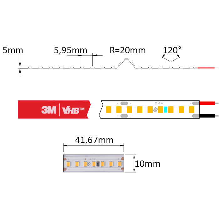 Kvalitní a vysoce svítivý vodotěsný LED pásek 24V SC24168 je vybaven pro snadnou montáž samolepící oboustrannou páskou nejvyšší řady 3M VHB. Tento typ samolepící pásky zajišťuje vynikající přilnavost k povrchu a nejlepší odvod tepla.