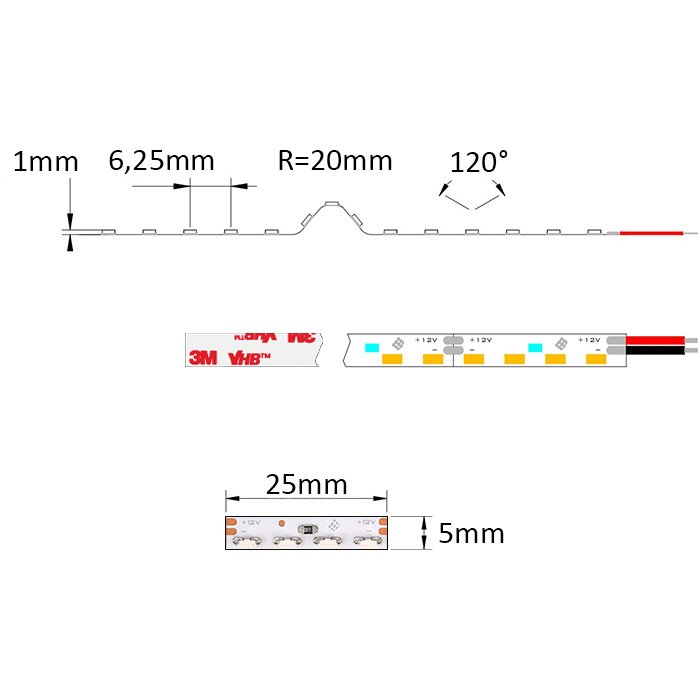 - 5mm šířka pásku - PCB (Printed Circuit Boards) je extra úzký, ideální pro aplikace vyžadující minimální rozměry při montáži.