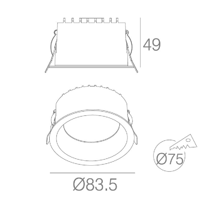 Instalace vestavného podhledového svítidla DOT-XS probíhá v několika krocích. Do podhledové stropní konstrukce je nutné vyvrtat montážní otvor o průměru Ø75 mm. Poté se svítidlo připojí k připravené elektroinstalaci a upevní do konstrukce pomocí integrovaného zajišťovacího mechanismu s pružinovými klipy, které zajistí jeho pevné a bezpečné usazení. Elektrické zapojení kabeláže by měla provádět výhradně kvalifikovaná osoba s potřebnou elektrotechnickou odborností.