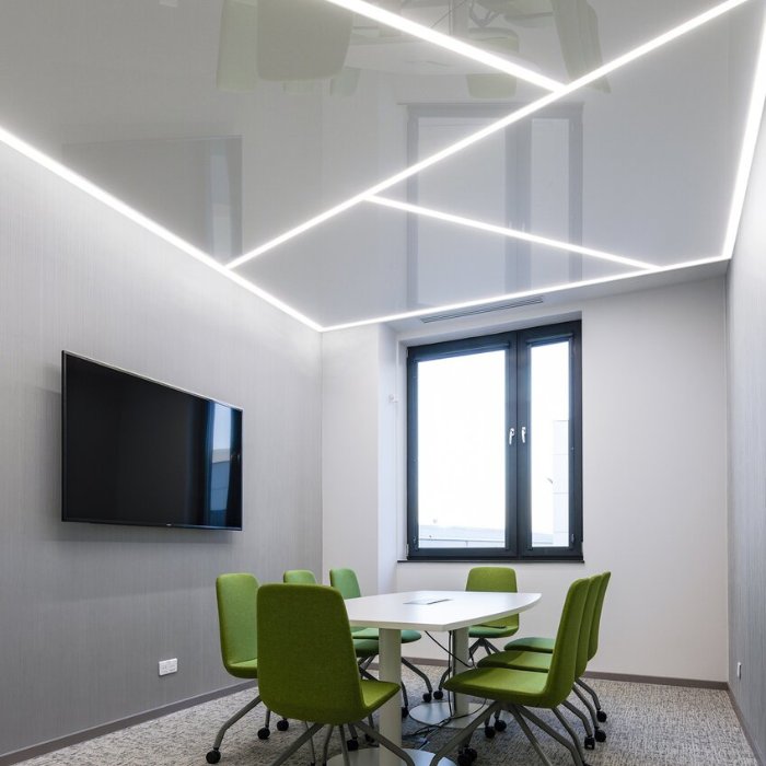 - Lineární osvětlení v podhledu - osvětlení po obvodu napínaných podhledů a prostor formou liniového světla.