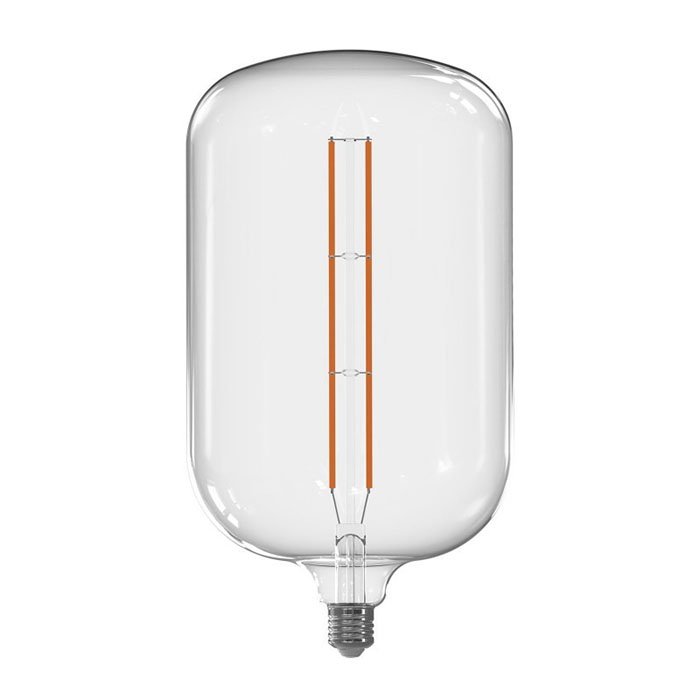 Stmívatelná velká žárovka E27 závitu o příkonu 13W je dekorativní a výkonný světelný zdroj. Patentovaný design velké žárovky s produktovým názvem Caramella XXL (v nejširší části Ø 180mm) je rafinovaným produktem a vytříbeným světelným dílem, hned z několika důvodů. Svým dominantním rozměrem umožňuje vytváření závěsných svítidel a lamp s objímkou E27. To co dělá žárovku Candy Caramella XXL mimořádným prvkem světlené dekorace je krásný válcový tvar, který v sobě snoubí starobylé sklářské mistrovství a nejmodernější LED technologii. Při rozsvícení velké žárovky se projeví výhody čirého zbarvení skla. Vyzařované světlo s indexem podání barev CRI90 proniká do prostoru plným výkonem zcela bez difuze. LED velká filamentová žárovka Caramella XXL s lineárně uloženými vlákny 8x LONG COBL produkuje osvětlení charakteristiky: