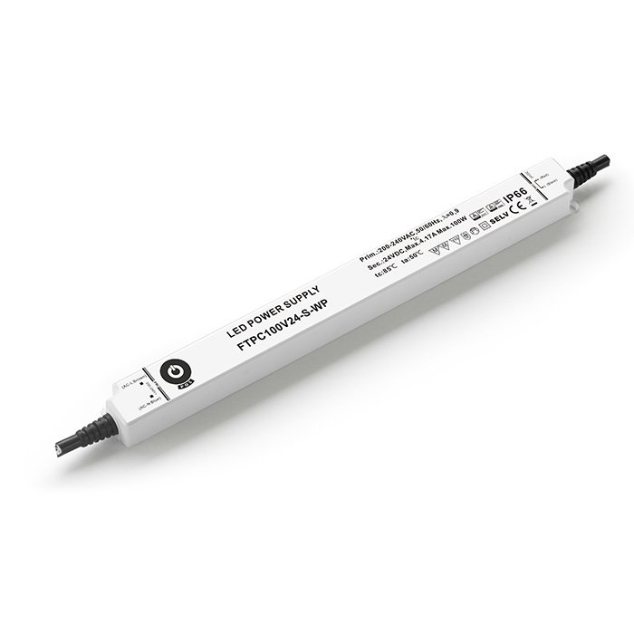 IP66 SLIM zdroj 24V POS FTPC100V24-S-WP je kvalitní spínaný zdroj, který je vybaven moderními technologiemi a elektronikou. Jeho technický a produktový design je navržen pro napájení LED pásků nebo prvků průmyslové a domácí automatizace. Je vhodný pro stejnosměrné napájení nízkonapěťových elektronických zařízení. Tento lehký a kompaktní 24V SLIM LED zdroj je vhodný pro evropské napájecí sítě (180-264 V AC). Na výstupu nabízí hodnoty: