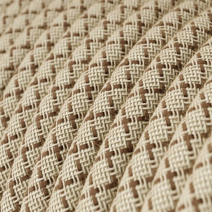 Materiálem látkového opletení pro retro kabel s označením Bark Brown and Beige RD63 je kombinace bavlny a lnu. Spojení těchto přírodních materiálů do rafinovaného vzoru opletu kabelu má několik charakteristických vlastností: