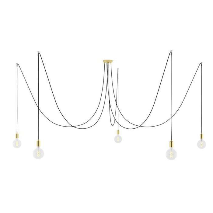 Lustr pavouk Spider Metal je jedinečné závěsné stropní svítidlo, které je funkční a dekorativní zároveň. Někdo by se mohl názvu pavouk obávat, ale to není vůbec třeba. Jedná se fascinující závěsné svítidlo s pěti dlouhými rameny, jejichž polohu lze při montáži jakkoliv upravit. Náš Spider Metal může být dokonalou alternativou pro jakýkoliv velký lustr a skvělou volbou pro ty co hledají neobyčejný lustr do velkého prostoru. Lustr Spider Metal může osvítit rozsáhlou plochu stejně jako jeho ramena mohou být svěšena nad konkrétní místa v prostoru. Flexibilita a variabilita použití patří mezi největší výhody tohoto typu osvětlení. Všechny kreativní duše jistě potěší možnost výběru z více barevných variant. Veškeré komponenty jako 1x stropní rozeta, 5x textilní kabel v délce 5x 400cm, 5x stropní háčky pro uchycení kabelu a 5x kovové objímky na žárovky prošly důkladnou selekcí a byly sladěny do posledního detailu. Charakteristické prvky jako stropní rozeta a objímky žárovek jsou vyrobeny z kovu v dokonalé povrchové úpravě a zpracování. Jejich jedinečný vzhled a kvalitu zaručuje výroba Made in Italy. Naším cílem bylo jednoduše stvořit výjimečný lustr pavouk vzhledu a vlastností.