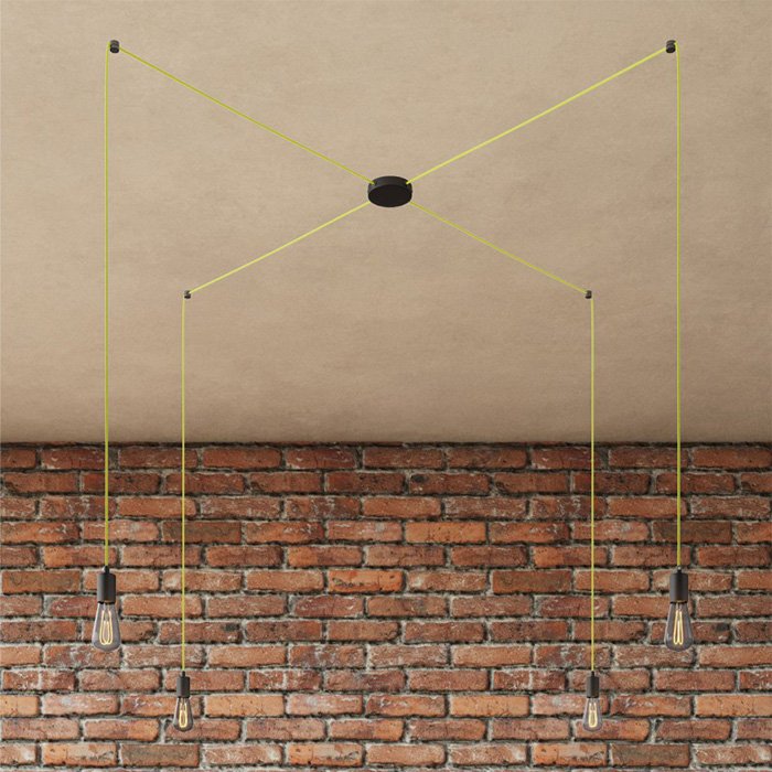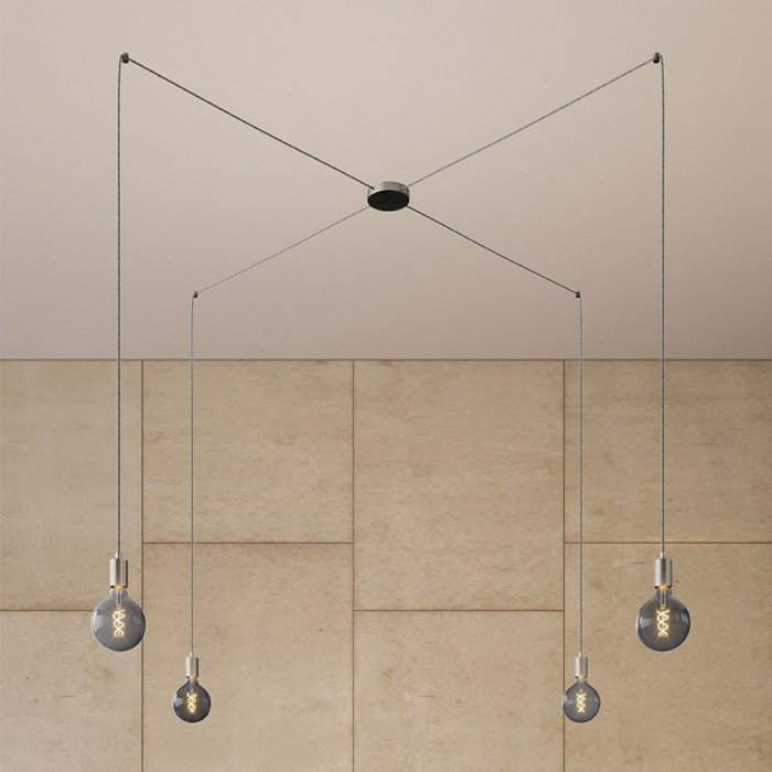 Lustr pavouk Spider Metal je jedinečné závěsné stropní svítidlo, které je funkční a dekorativní zároveň. Někdo by se mohl názvu pavouk obávat, ale to není vůbec třeba. Jedná se fascinující závěsné svítidlo se čtyřmi dlouhými rameny, jejichž polohu lze při montáži jakkoliv upravit. Náš Spider Metal může být dokonalou alternativou pro jakýkoliv velký lustr a skvělou volbou pro ty co hledají neobyčejný lustr do velkého prostoru. Lustr Spider Metal může osvítit rozsáhlou plochu stejně jako jeho ramena mohou být svěšena nad konkrétní místa v prostoru. Flexibilita a variabilita použití patří mezi největší výhody tohoto typu osvětlení. Všechny kreativní duše jistě potěší možnost výběru z více barevných variant. Veškeré komponenty jako 1x stropní rozeta, 4x textilní kabel v délce 4x 300cm, 4x stropní háčky pro uchycení kabelu a 4x kovové objímky na žárovky prošly důkladnou selekcí a byly sladěny do posledního detailu. Charakteristické prvky jako stropní rozeta a objímky žárovek jsou vyrobeny z kovu v dokonalé povrchové úpravě a zpracování. Jejich jedinečný vzhled a kvalitu zaručuje výroba Made in Italy. Naším cílem bylo jednoduše stvořit výjimečný lustr pavouk vzhledu a vlastností.