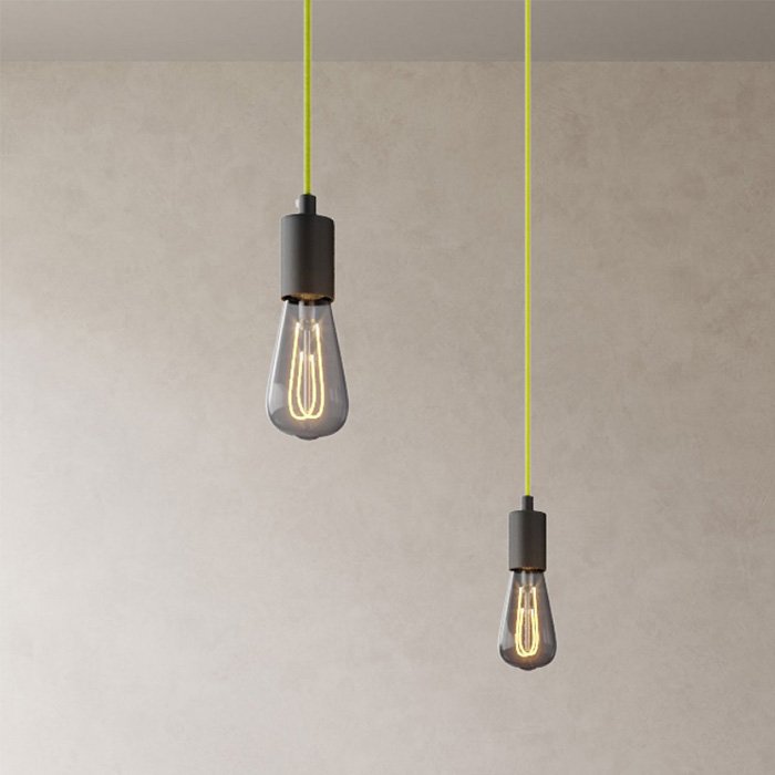 - kartáčovaný titan | textilní kabel ERC37 | ve variantě se žárovkami: [DL700179] LED, G125, 5W, 150 Lm, 2000K, E27, stmívatelná