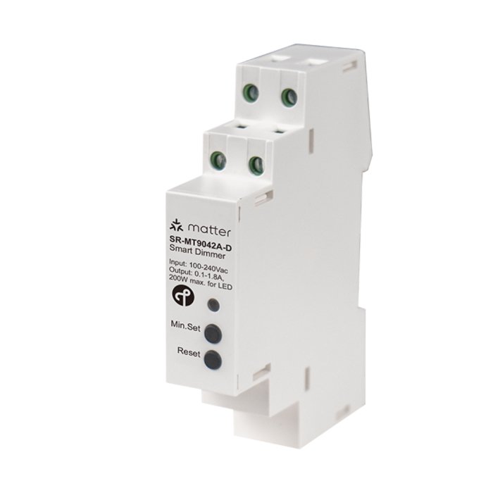 Matter stmívač 230V na DIN lištu do elektrického rozvaděče SR-MT9040A-S je certifikovaným produktem (Connectivity Standards Alliance), který využívá pro přenos řídícího signálu kombinaci LAN, WIFI, Thread, Bluetooth Low Energy (BLE) standardů s cílem dosáhnout robustního, flexibilního a bezpečného systému pro ovládání chytré domácnosti. Klíčovou výhodou DIN Matter stmívače osvětlení 230V je jeho široká kompatibilita s produkty různých výrobců, které využívají technologii Matter. Tato zařízení spolu bezproblémově komunikují a mohou být integrována do jednoho systému osvětlení.