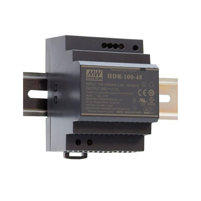 Zdroj na DIN lištu 24V Mean Well HDR-100-24 je určen do rozvodných skříní. Pro připojení kabeláže je připravena šroubovací svorkovnice. Montáž a zapojení by měl provádět pouze kvalifikovaný odborník s potřebným osvědčením.