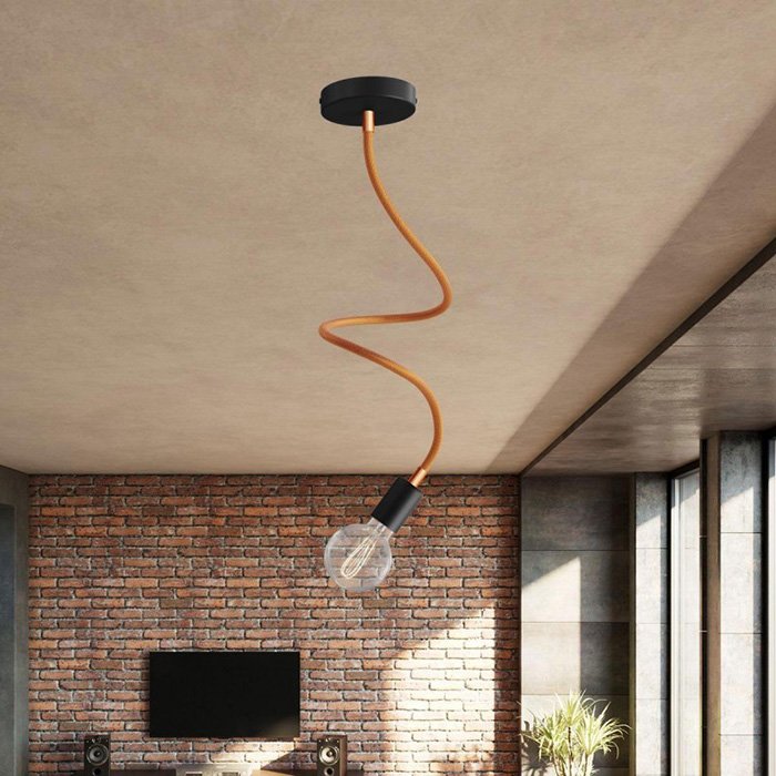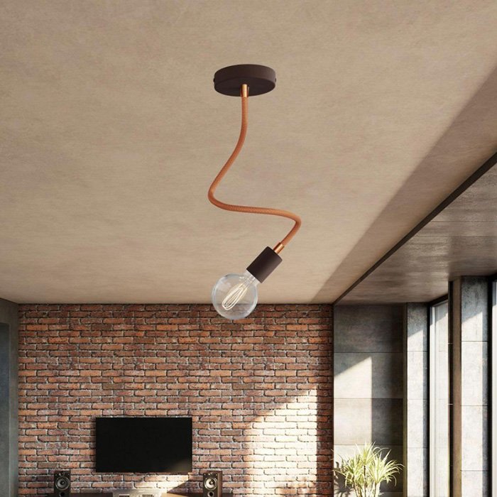Měděné flexibilní rameno pro lampy a kreativní světelné instalace Flex RM74 je skvělou volbou pro všechny, kteří chtějí vytvářet originální svítidla nebo experimentovat s různými způsoby montáže osvětlení. Umožňuje naklánění, otáčení i tvarování a je vybaveno závitovou trubkou M10 na obou koncích. Uvnitř ramene je již zavlečen vodič 2×0,75 mm², který na obou stranách vyčnívá, což usnadňuje připojení komponent, jako jsou stropní či nástěnné krytky pro svítidla nebo objímky na žárovky.