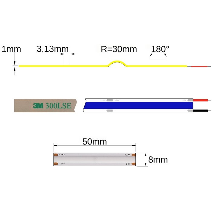 Doplňující technické informace pro modrý COB 24V LED pásek COB-SC24480E
