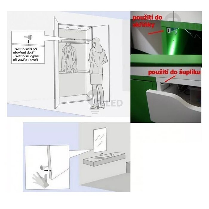 - Vhodné pro osvětlení vnitřku skříní, skříněk, šuplíků a dalších prvků nábytku