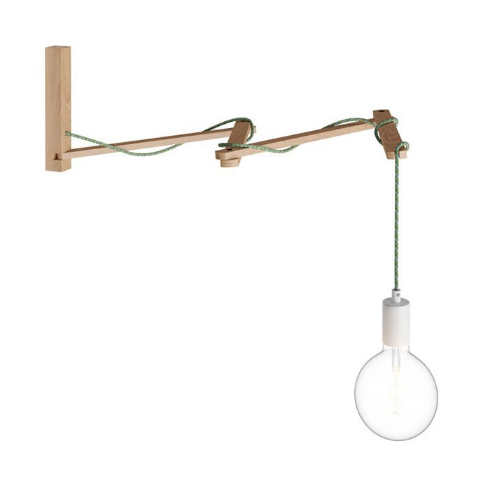 Nástěnné rameno na lampu Pinocchio XL je oblíbeným prvkem interiérového osvětlení. Slouží pro výrobu nástěnné lampy se žárovkou, kterou můžete nainstalovat téměř kdekoliv kde je v dosahu elektrický kabel nebo zásuvka. Nástěnné rameno pro zavěšení lampy Pinocchio XL je polohovatelné s nastavitelnou délkou ramene. Pinocchio XL je ideální nástěnné rameno pro vytvoření dokonalých nástěnných svítidel, která osvětlí koutek na čtení v obývacím pokoji a jakékoli jiné místnosti. Vždy poskytuje originální a jedinečný nádech, a to nejen díky svému tvaru, ale také díky funkci nastavení délky, která umožňuje přizpůsobit světlo jakékoli situaci. Design a kvalitní zpracování jednoduše poutá pozornost zvláště pokud využijete při sestavování nástěnné lampy komponent jako jsou barevné textilní kabely. Rameno lampy na stěnu Pinocchio XL je plně kompatibilní s kabely 2x0,75 mm i 3x 0,75mm, prostě jen vyberte design kabelu, který bude pro sestavování vašeho nástěnného svítidla ten pravý. Dalším prvkem, který povýší vzhled lampy na mimořádnou úroveň je vhodná objímka E27. Nástěnné dřevěné rameno lampy Pinocchio XL stimuluje všechny kreativní smysly. Vytvořte mimořádné instalace nástěnného osvětlení v retro stylu.