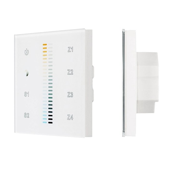 - 1/2 - RF nástěnný CCT dotykový panel SR-2830B-AC - slouží jako ovládací prvek a koncové zařízení pro ovládání pásků a svítidel.