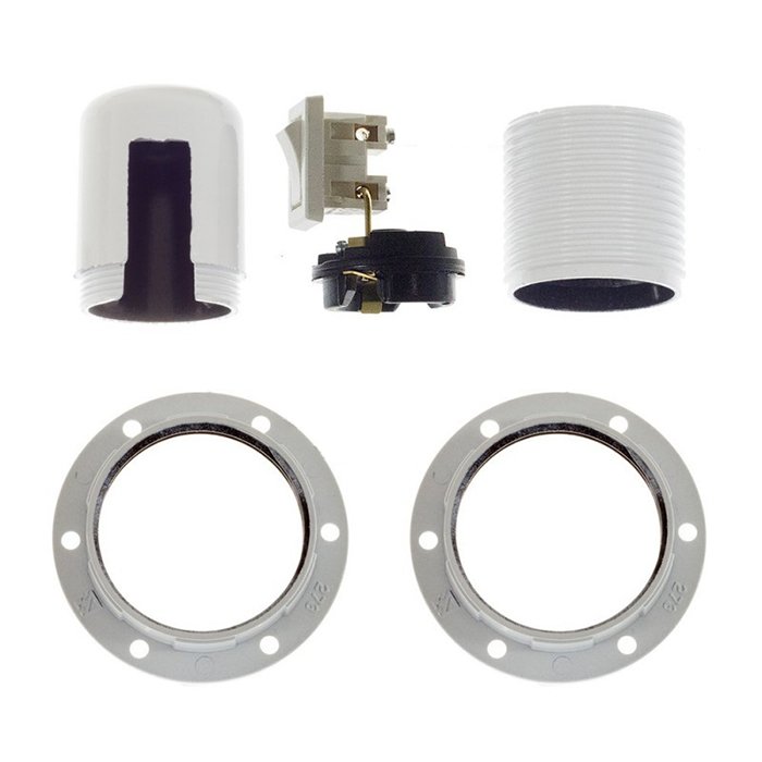 Z jakých komponent se skládá E27 bakelitová objímka žárovky se závitem pro stínidlo a vypínačem Bakeluna-SW?