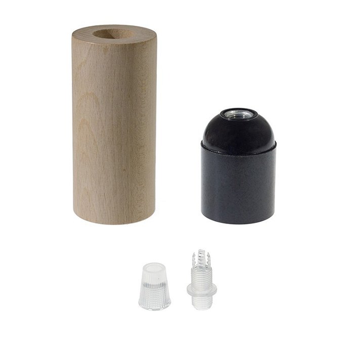 Z jakých komponent se skládá E27 dřevěná objímka žárovky pro lanový kabel Woodara-2XL?