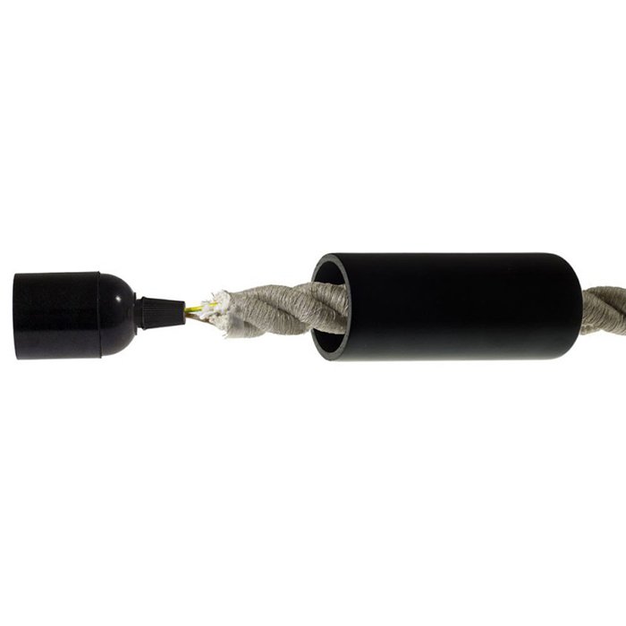 - Samotná objímka se závitem pro uchycení žárovky je vyrobena z thermoplastu (vhodná pro kabel 2x0,75 i 3x0,75 mm | nevyžaduje uzemnění) - moderního technického plastu známého pro svou vysokou pevnost a odolnost vůči mechanickému namáhání. Tento materiál zajišťuje stabilní fixaci žárovky i při dlouhodobém používání a chrání ji před samovolným uvolněním. Jeho nízká hmotnost zároveň snižuje zátěž celého svítidla, aniž by byla narušena jeho stabilita či spolehlivost.
