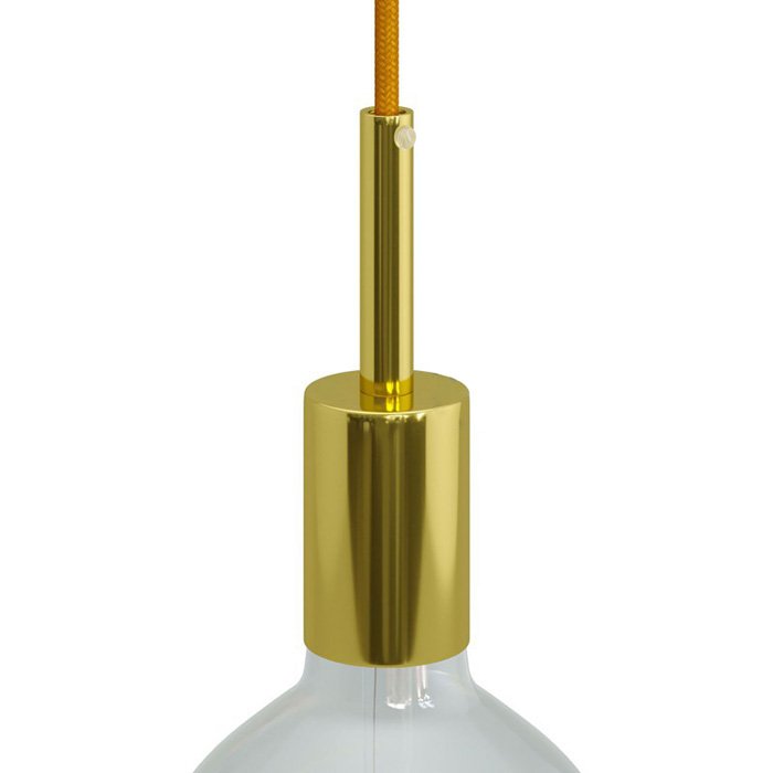 Kovová E27 objímka na žárovku s produktovým označením Metala-7 kombinuje spolehlivou funkčnost a stylové estetické zpracování. Poskytuje široké možnosti při návrhu, výrobě či renovaci svítidel. Lze ji využít pro závěsná svítidla, nástěnné instalace nebo jako součást složitějších světelných sestav. 7 cm dlouhá válcová průchodka působí jako designový detail, který pozvedne celkový vzhled osvětlení. Využijte kovovou objímku Metala-7 pro E27 žárovky s velkým závitem jako minimalistické řešení, kde samotná žárovka působí jako hlavní designový prvek.