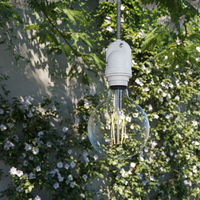 - Vnější i vnitřní část objímky je vyrobena z thermoplastu (vhodná pro kabel 2x1 mm | nevyžaduje uzemnění) - moderního technického plastu známého pro svou vysokou pevnost a odolnost vůči mechanickému namáhání. Jeho nízká hmotnost zároveň snižuje zátěž celého svítidla, aniž by byla narušena jeho stabilita či spolehlivost. Materiál je odolný vůči UV záření, takže si jeho elegantní barvy zachovávají svou sytost i při dlouhodobém vystavení náročným podmínkám. Speciální izolační gel spolu s těsnicí membránou pevně obepínající patici žárovky zajišťují spolehlivé utěsnění a umožňují dosažení krytí IP65 při použití s tvary žárovek A60, ST64, G95 a G125.