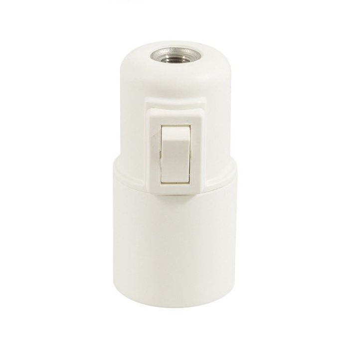 Plastová E27 objímka s vypínačem a produktovým označením Plastika-SW spojuje nízkou hmotnost a cenovou dostupnost. Poskytuje široké možnosti při výrobě lustrů a závěsných svítidel. Integrovaný kolébkový vypínač v objímce zajišťuje pohodlné ovládání světla bez potřeby nástěnného spínače. Využijte plastovou objímku s kolébkovým vypínačem Plastika-SW pro E27 žárovky s velkým závitem jako funkční řešení, kde vynikne samotná žárovka jako hlavní designový prvek.