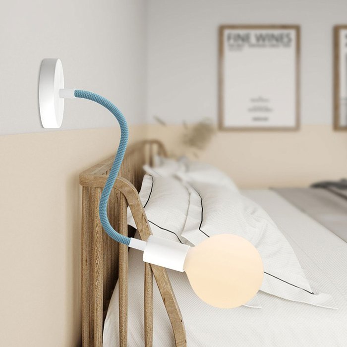 Opletený povrch z jemné Rayon textilie (umělé hedvábí) dodává kovovému husímu krku s robustní mechanikou mimořádný vzhled, díky kterému se stává nejen funkčním, ale i estetickým prvkem interiéru.