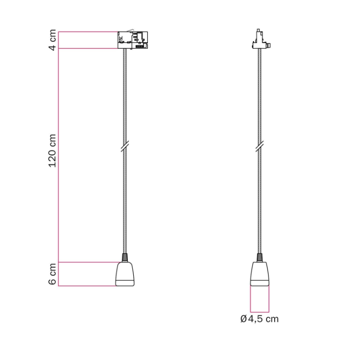 Porcelánová závěsná objímka E27 do kolejnicového systému 3F | 230V