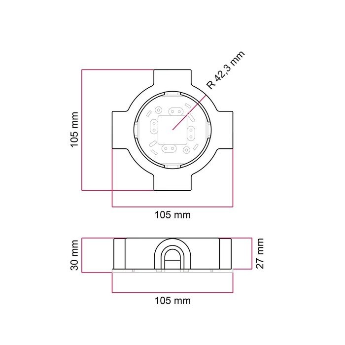 Porcelánový rámeček P-Frame slouží jako praktický montážní prvek, který výrazně usnadňuje propojení flexibilních trubic povrchové elektroinstalace Creative-Tube až ze čtyř různých směrů (v závislosti na zvolené produktové variantě). Díky svému chytrému konstrukčnímu řešení umožňuje elegantní povrchové vedení kabeláže, přičemž veškeré elektrické spojení zůstává diskrétně a bezpečně ukryté pod rámečkem.