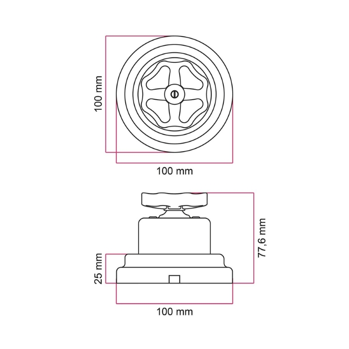 Bílý otočný porcelánový vypínač s rámečkem a označením P-Knob-Base je praktickým a stylovým řešením pro vytvoření povrchové elektroinstalace. Vyniká tradičním řemeslným zpracováním s autentickými estetickými prvky porcelánu a zároveň odpovídá současným standardům kvality, bezpečnosti a mechanické odolnosti. Originálně řešený otočný mechanismus, inspirovaný retro vzhledem vodovodních kohoutků, zajišťuje nejen pohodlné a intuitivní ovládání světel, ale zároveň slouží jako výrazný designový prvek, který zaujme na první pohled v jakémkoli interiéru.
