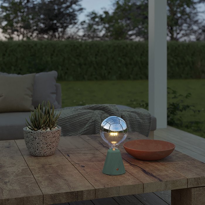 Stolní lampa na baterie Cabless01 se stříbrnou žárovkou G125 1,3W