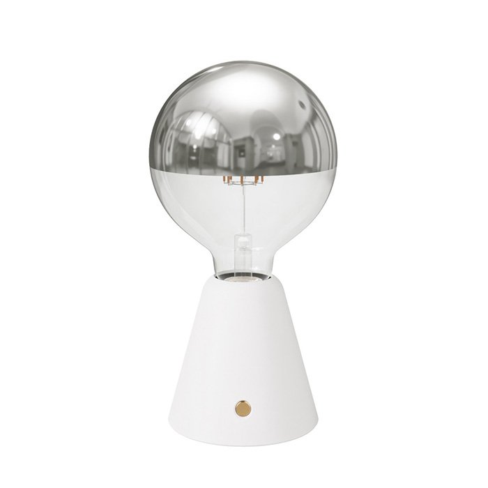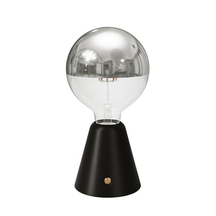 Přenosná stolní lampa bez kabelu Cabless01 je vybavena 5V žárovkou velikosti G125 se stříbrným vrchlíkem i baterií typu Li-ion 18650. Naopak součástí balení není USB-C kabel.