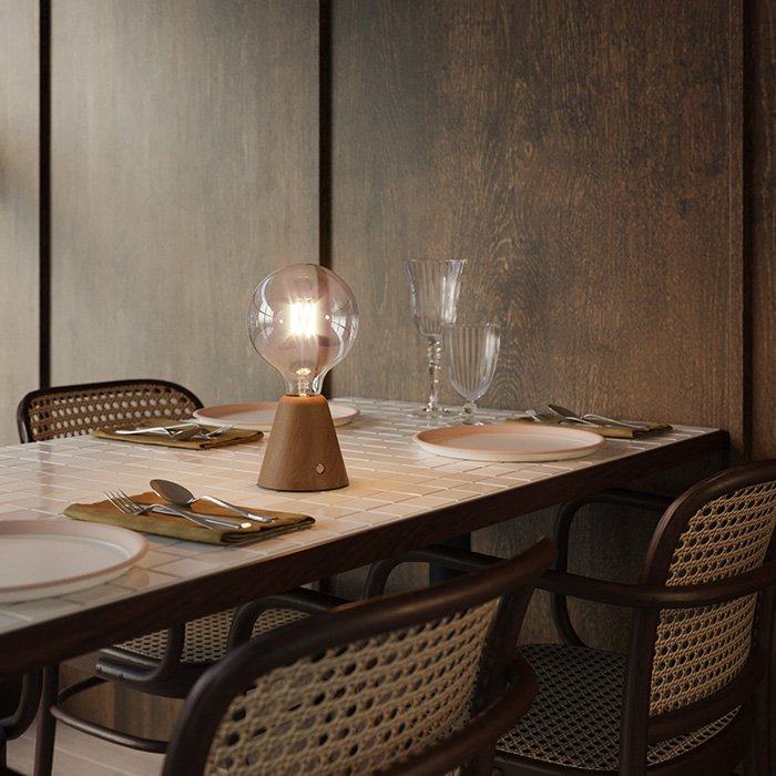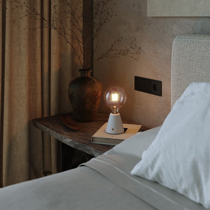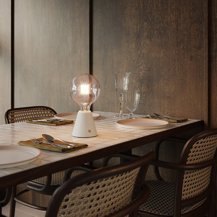 Stolní lampa na baterie Cabless01 se žárovkou 5V velikosti G125 je přenosným svítidlem s mimořádně univerzálním použitím. Vyniká kvalitním zpracováním a materiály, které prošly důkladnou selekcí. Naším cílem bylo stvořit dokonale modulární přenosné světlo s nabíjením pomocí USB-C. Baterie typu Li-ion 18650 je součástí balení.