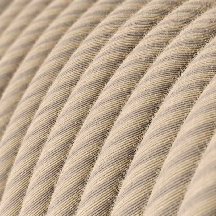 Pruhovaný látkový kabel 2x0,75 mm s produktovým označením Vertigo ERD20 je určen pro pevné instalace v elektrických sítích 230 V. Vhodný je zejména pro dekorativní interiérová svítidla nebo světlené sestavy, kde vynikne jeho proužkované barevné provedení i precizní zhotovení a zároveň není vyžadován ochranný vodič (PE). Díky měděným lankovým vodičům v kulatém provedení, dvojité PVC izolaci a preciznímu zpracování nabízí kabel vysokou míru bezpečnosti, flexibilitu a nadstandardní mechanickou odolnost s nosností kabelu pro zavěšená svítidla až 2,25 kg. Dvoubarevný pruhovaný povrch s kombinací materiálů Linen (len) a Cotton (bavlna) dodává kabelu mimořádný vzhled, díky kterému se stává nejen funkčním, ale i estetickým prvkem interiéru. Využijte 2x0,75 mm proužkovaný látkový kabel ERD20 pro individuální či malosériovou výrobu originálních svítidel či osvětlovacích sestav s důrazem na design a detail.