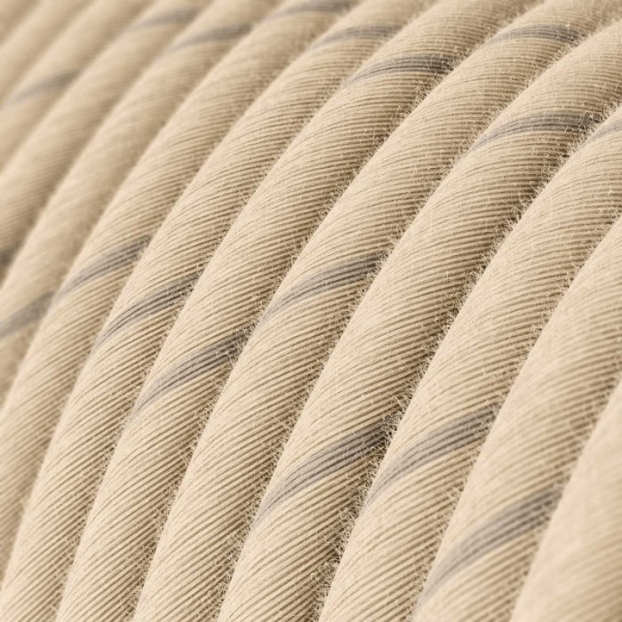 Pruhovaný látkový kabel 2x0,75 mm s produktovým označením Vertigo ERD23 je určen pro pevné instalace v elektrických sítích 230 V. Vhodný je zejména pro dekorativní interiérová svítidla nebo světlené sestavy, kde vynikne jeho proužkované barevné provedení i precizní zhotovení a zároveň není vyžadován ochranný vodič (PE). Díky měděným lankovým vodičům v kulatém provedení, dvojité PVC izolaci a preciznímu zpracování nabízí kabel vysokou míru bezpečnosti, flexibilitu a nadstandardní mechanickou odolnost s nosností kabelu pro zavěšená svítidla až 2,25 kg. Dvoubarevný pruhovaný povrch s kombinací materiálů Linen (len) a Cotton (bavlna) dodává kabelu mimořádný vzhled, díky kterému se stává nejen funkčním, ale i estetickým prvkem interiéru. Využijte 2x0,75 mm proužkovaný látkový kabel ERD23 pro individuální či malosériovou výrobu originálních svítidel či osvětlovacích sestav s důrazem na design a detail.