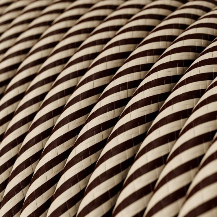 Pruhovaný textilní kabel 2x0,75 mm s produktovým označením Vertigo ERM51 je určen pro pevné instalace v elektrických sítích 230 V. Vhodný je zejména pro dekorativní interiérová svítidla nebo světlené sestavy, kde vynikne jeho proužkované barevné provedení i precizní zhotovení a zároveň není vyžadován ochranný vodič (PE). Díky měděným lankovým vodičům v kulatém provedení, dvojité PVC izolaci a preciznímu zpracování nabízí kabel vysokou míru bezpečnosti, flexibilitu a nadstandardní mechanickou odolnost s nosností kabelu pro zavěšená svítidla až 2,25 kg. Dvoubarevný pruhovaný povrch z jemně a hustě tkané textilie High Definition textilie dodává kabelu mimořádný vzhled, díky kterému se stává nejen funkčním, ale i estetickým prvkem interiéru. Využijte 2x0,75 mm proužkovaný textilní kabel ERM51 pro individuální či malosériovou výrobu originálních svítidel či osvětlovacích sestav s důrazem na design a detail.