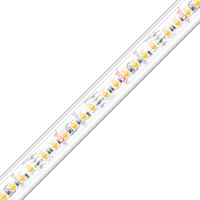 RGB LED pásek KLUŚ KWP-14KRGB-1200-24 o příkonu 12W, napájecím napětí 24V patří mezi vysoce kvalitní RGB LED pásky se skvělými parametry, dlouhou životností a vysokou technickou hodnotou. KLUŚ poskytuje na tento produkt tovární záruku 4 roky. Kvalitní RGB LED pásek osazený diodami SMD5050 neztrácí rychle svou svítivost a nehrozí u něj náhodná porucha některého z modulů nebo jednotlivých LED diod. Základem pro LED pásek RGB je použitý podkladový materiál ve formě plošného spoje FPC (Flexible printed circuits) se zvýšeným podílem mědi. LED pásek je osazený nejkvalitnějšími LED diodami v počtu 120 LED/m a šířkou pásku 16,7mm. Při montáži do LED profilu s difuzorem tvoří svítící LED pásek souvislou linii světla bez viditelných mezer mezi diodami pouze v případě montáže do hlubšího LED profilu. RGB Ledkový pásek 24V je vhodný pro instalaci v interiéru. Splňuje třídu krytí IP65. Nemá zvýšenou odolnost proti vlhku a vodě.