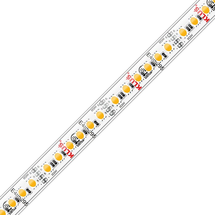 RGB LED pásek KLUŚ KWP-RGB-1200-24 o příkonu 12W, napájecím napětí 24V patří mezi vysoce kvalitní RGB LED pásky se skvělými parametry, dlouhou životností a vysokou technickou hodnotou. KLUŚ poskytuje na tento produkt tovární záruku 4 roky. Kvalitní RGB LED pásek osazený diodami SMD5050 neztrácí rychle svou svítivost a nehrozí u něj náhodná porucha některého z modulů nebo jednotlivých LED diod. Základem pro LED pásek RGB je použitý podkladový materiál ve formě plošného spoje FPC (Flexible printed circuits) se zvýšeným podílem mědi. LED pásek je osazený nejkvalitnějšími LED diodami v počtu 120 LED/m a šířkou pásku 10mm. Při montáži do LED profilu s difuzorem tvoří svítící LED pásek souvislou linii světla bez viditelných mezer mezi diodami pouze v případě montáže do hlubšího LED profilu. RGB Ledkový pásek 24V je vhodný pro instalaci v interiéru. Splňuje třídu krytí IP65. Nemá zvýšenou odolnost proti vlhku a vodě.