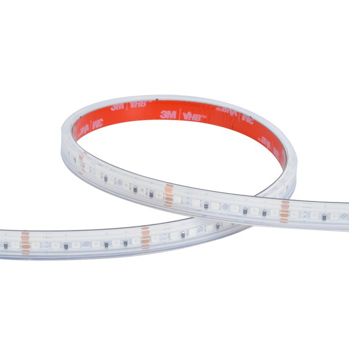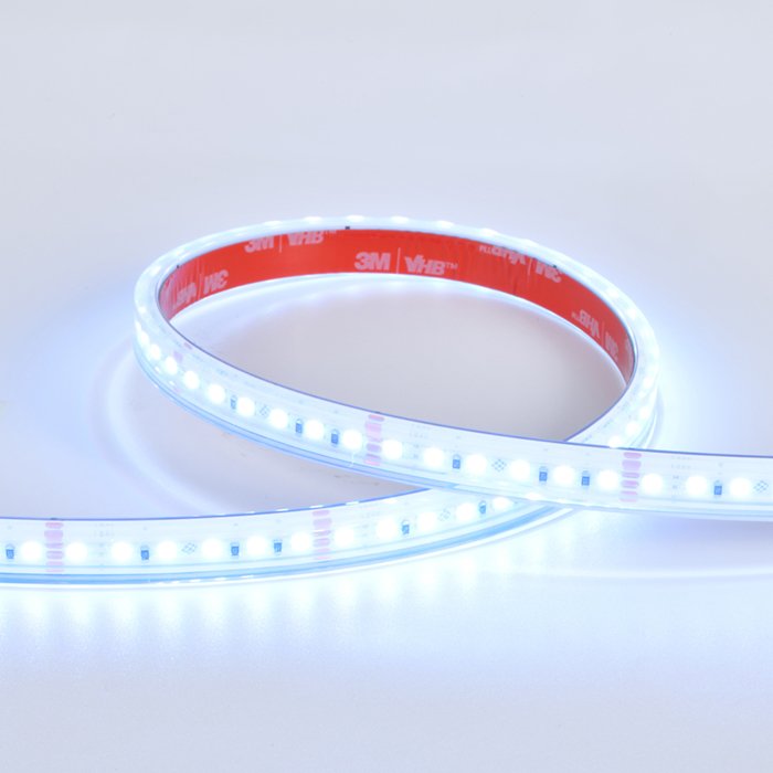 Kvalitní a vysoce svítivý 24V RGB pásek IP67 RGB24120 je vybaven pro snadnou montáž samolepící oboustrannou páskou nejvyšší řady 3M VHB. Tento typ samolepící pásky zajišťuje vynikající přilnavost k povrchu a nejlepší odvod tepla.