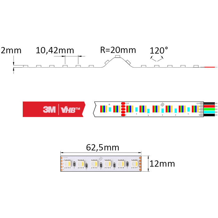 Doplňující technické informace pro 24V RGBW LED pásek RGBW2496-25