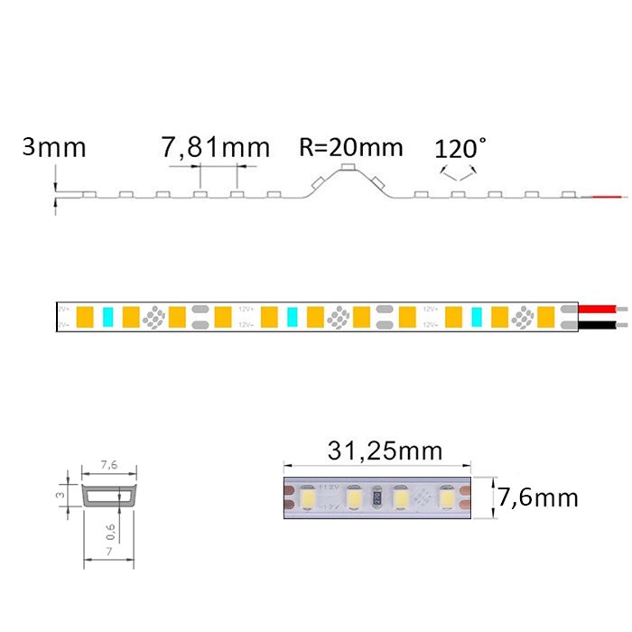 | počet LED diod/1 běžný metr: | ≤ 240 LED/1bm |